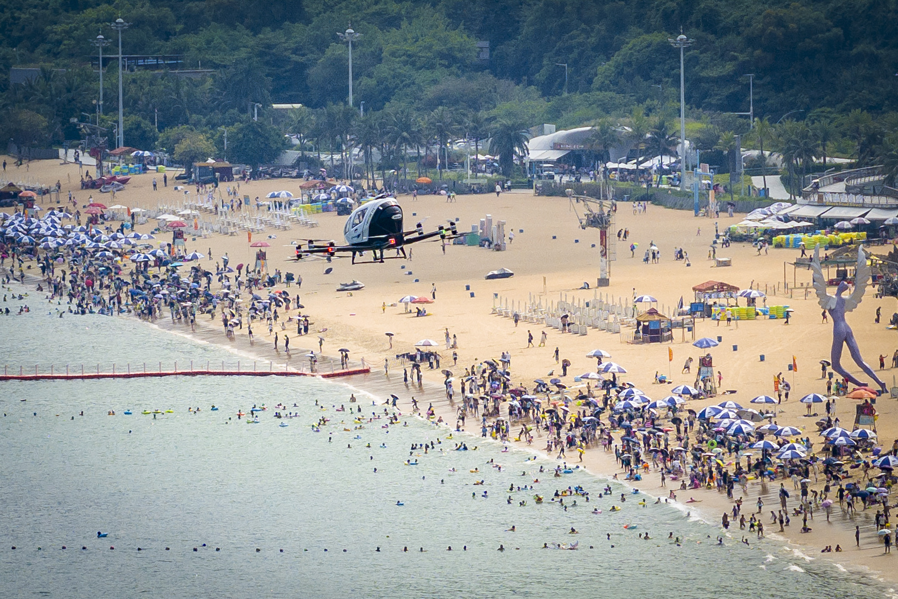 2024年8月27日,深圳大梅沙海滨公园,市民乘坐电动垂直起降航空器(eVTOL),低空俯视山海兴隆。 南边+ 朱洪波 拍摄