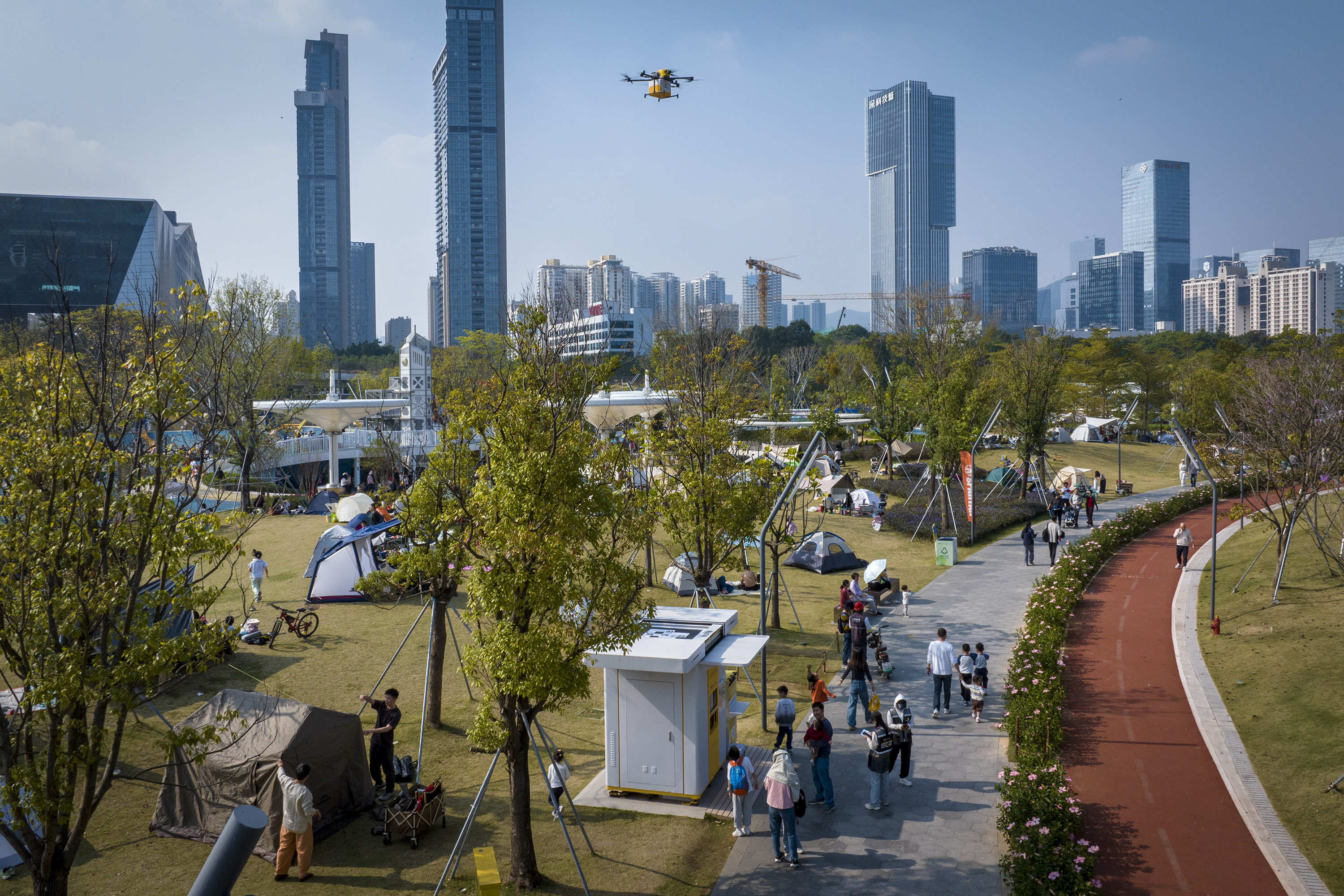 2025年12月6日,深圳笔架猴子园,市民线坎坷单,无东说念主机输送好意思食“从天而下”。 南边+ 朱洪波 拍摄