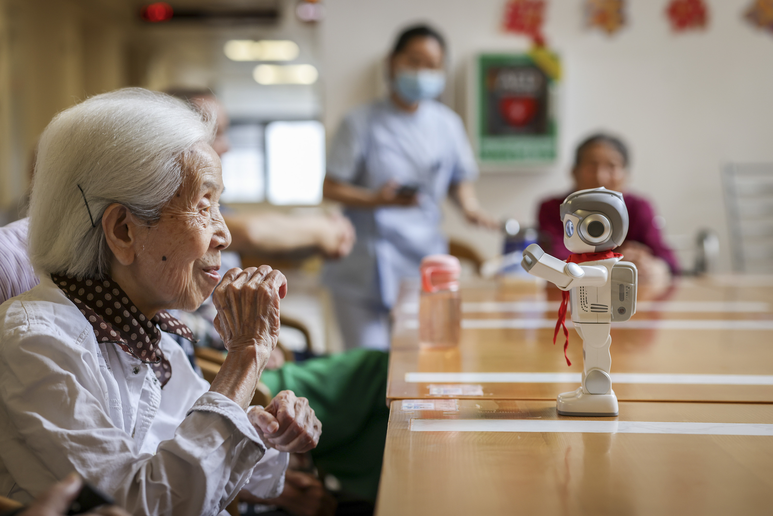2024年6月5日,深圳市养老照料院,李奶奶看着机器东说念主秀舞,90岁的她如孩童般摆动。 南边+ 朱洪波 拍摄