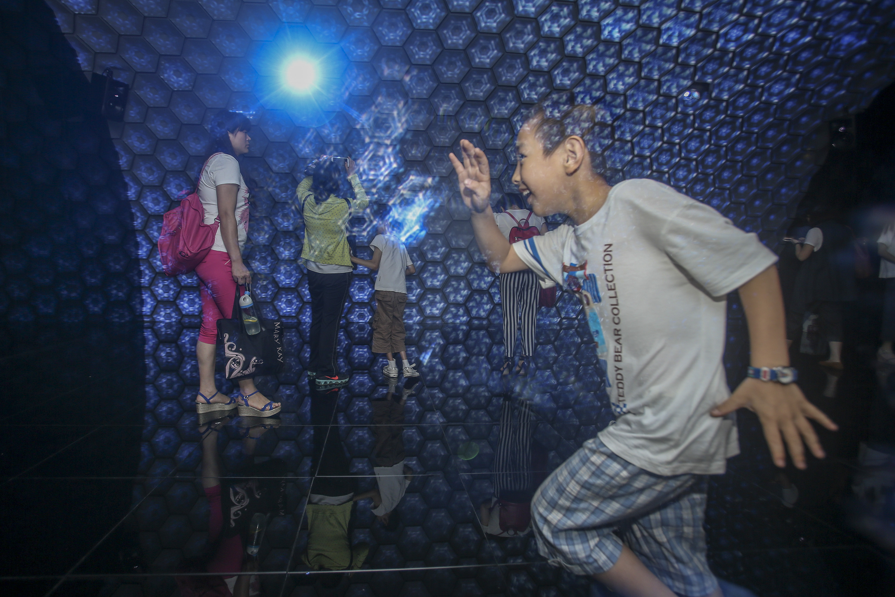 2016年5月14日,深圳第12届文博会,视听展览通过数码灯光与声息交织,将不雅众带入编造场景。 南边+ 朱洪波 拍摄