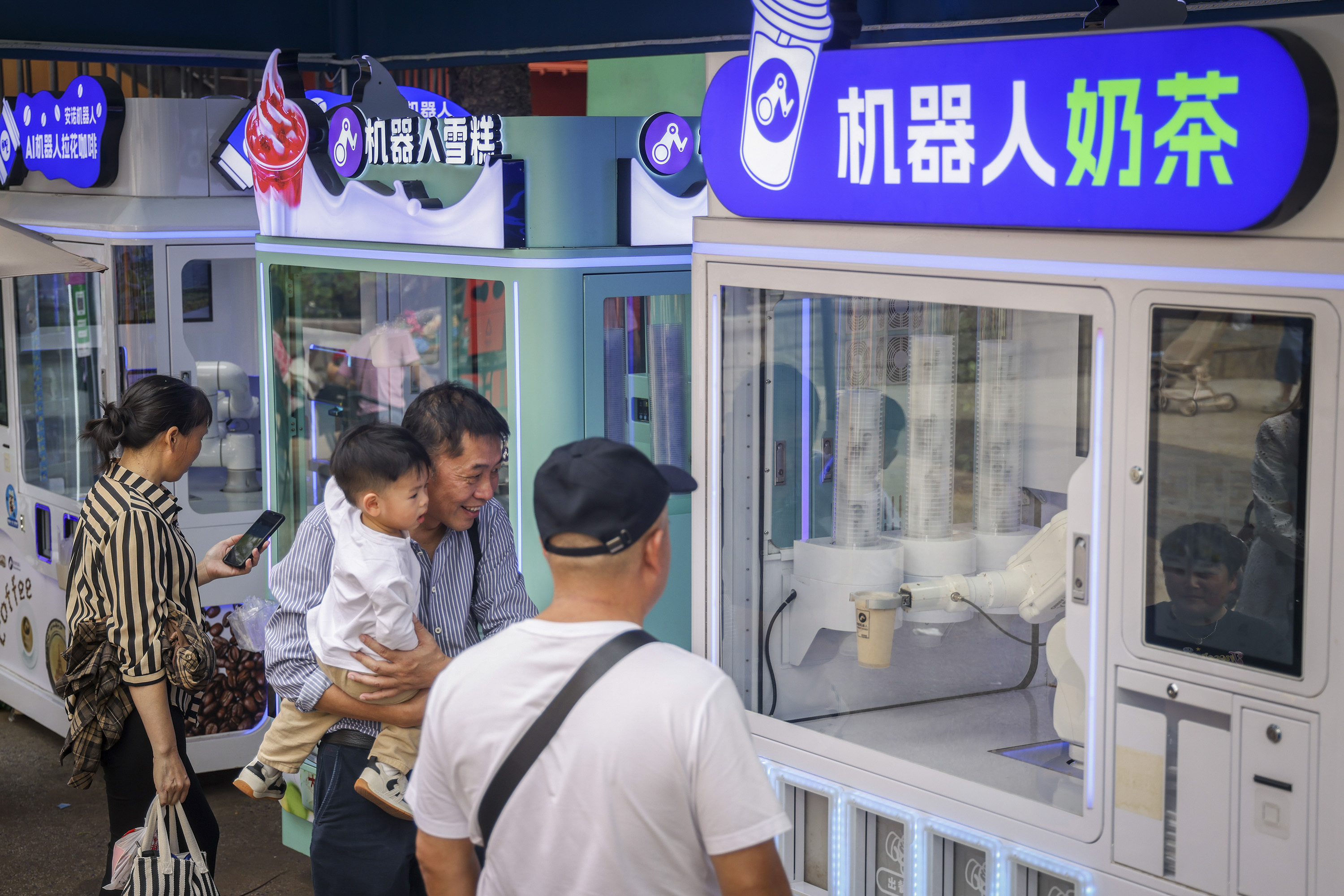 2025年10月26日,深圳寰宇之窗景区,机器东说念主全自动制作奶茶、雪糕、咖啡,眩惑搭客体验。 南边+ 朱洪波 拍摄
