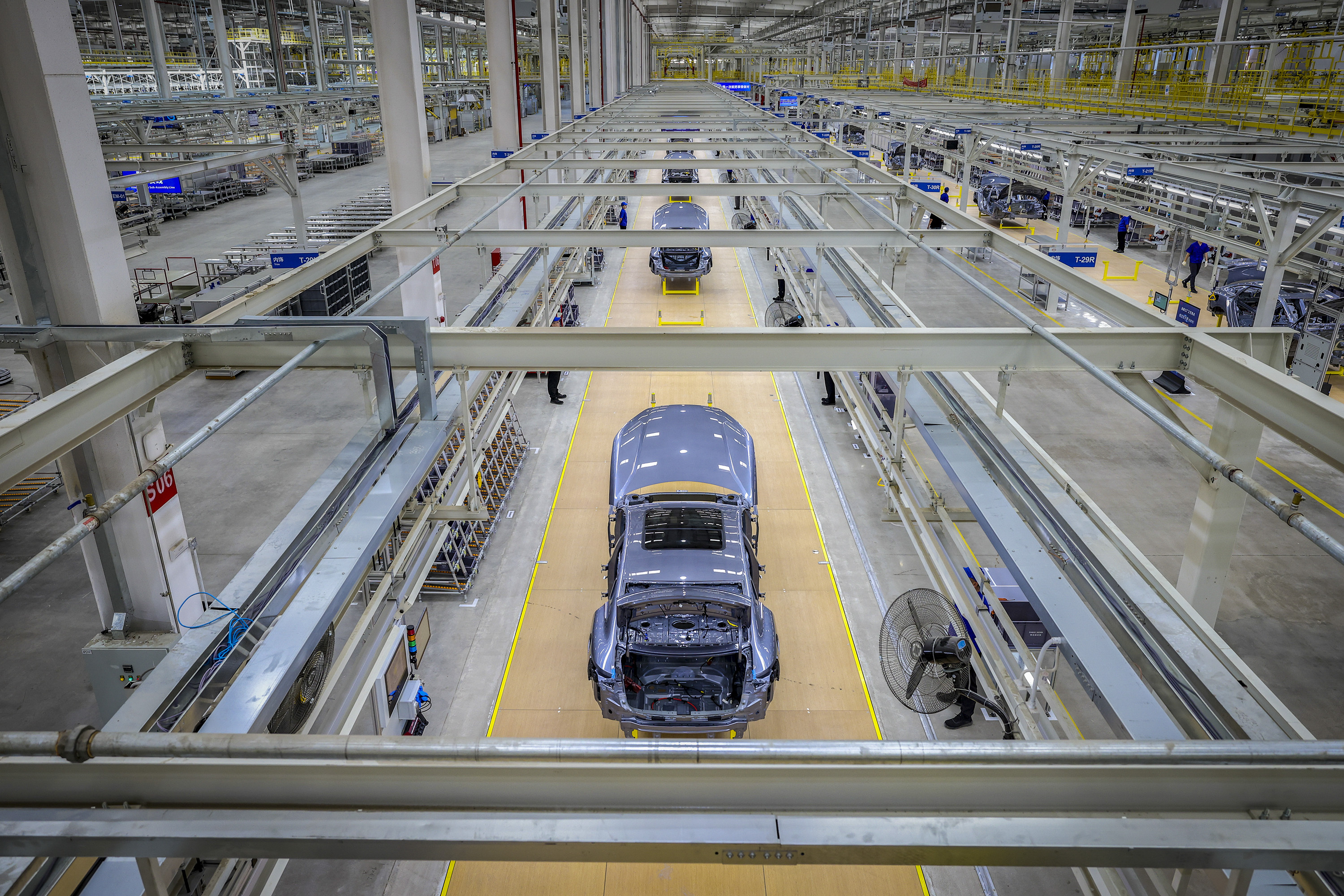 2023年9月28日,深汕比亚迪汽车工业园,智能化的新动力汽车分娩线平均60秒下线一台车。 南边+ 朱洪波 拍摄