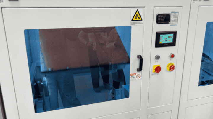 工程师小张带我到个铁疙瘩机器前,这玩意儿叫滚筒跌落测试仪。