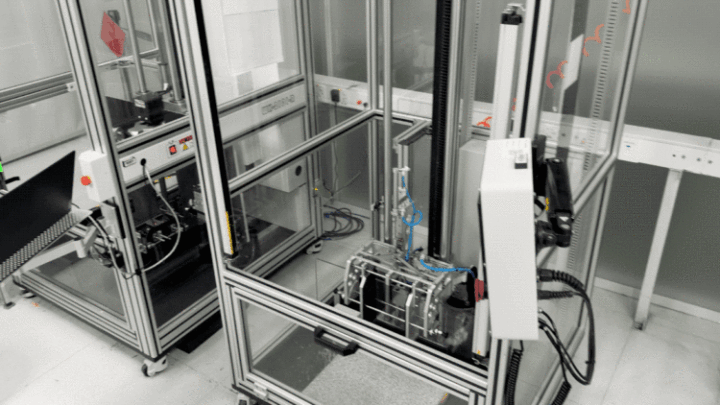 定向跌落测试更狠,机器像个吊车,把手机吊到1.5米高,“啪”一下砸向台面。