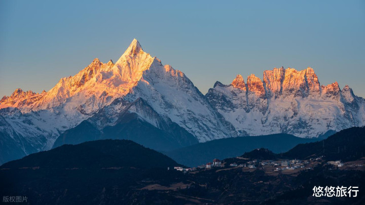 冬季好天多,看到日照金山的概率增多。提前一天住在雾浓顶或飞来寺,黎明梅里雪山的日照金山,20多分钟时候里,从蓝调时刻到雪山披金,太过摇荡。