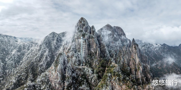 南边冬季看雪景、云海、雾凇的好行止。缆车、峭壁电梯,让上山难度缩小。