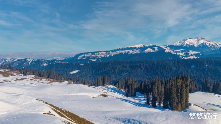南北走向的山间阔谷,白清白嫩的雪峰、杉林、雪原、溪流、峡谷,在这里齐能看到。